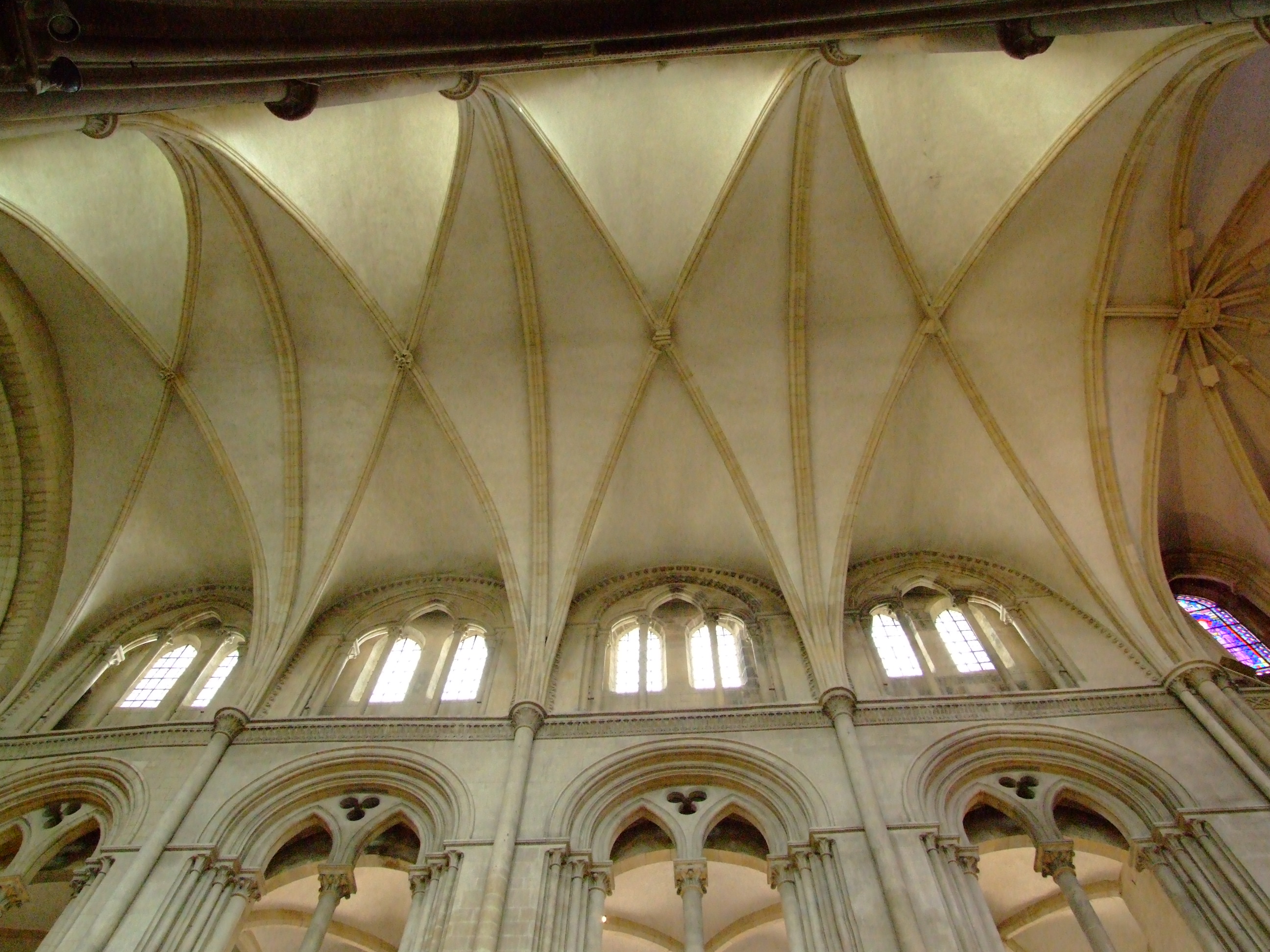 abbatiale Saint-Etienne à Caen (14) les dispositions quadripartites des voûtes du transept nord vues depuis la croisée de transept