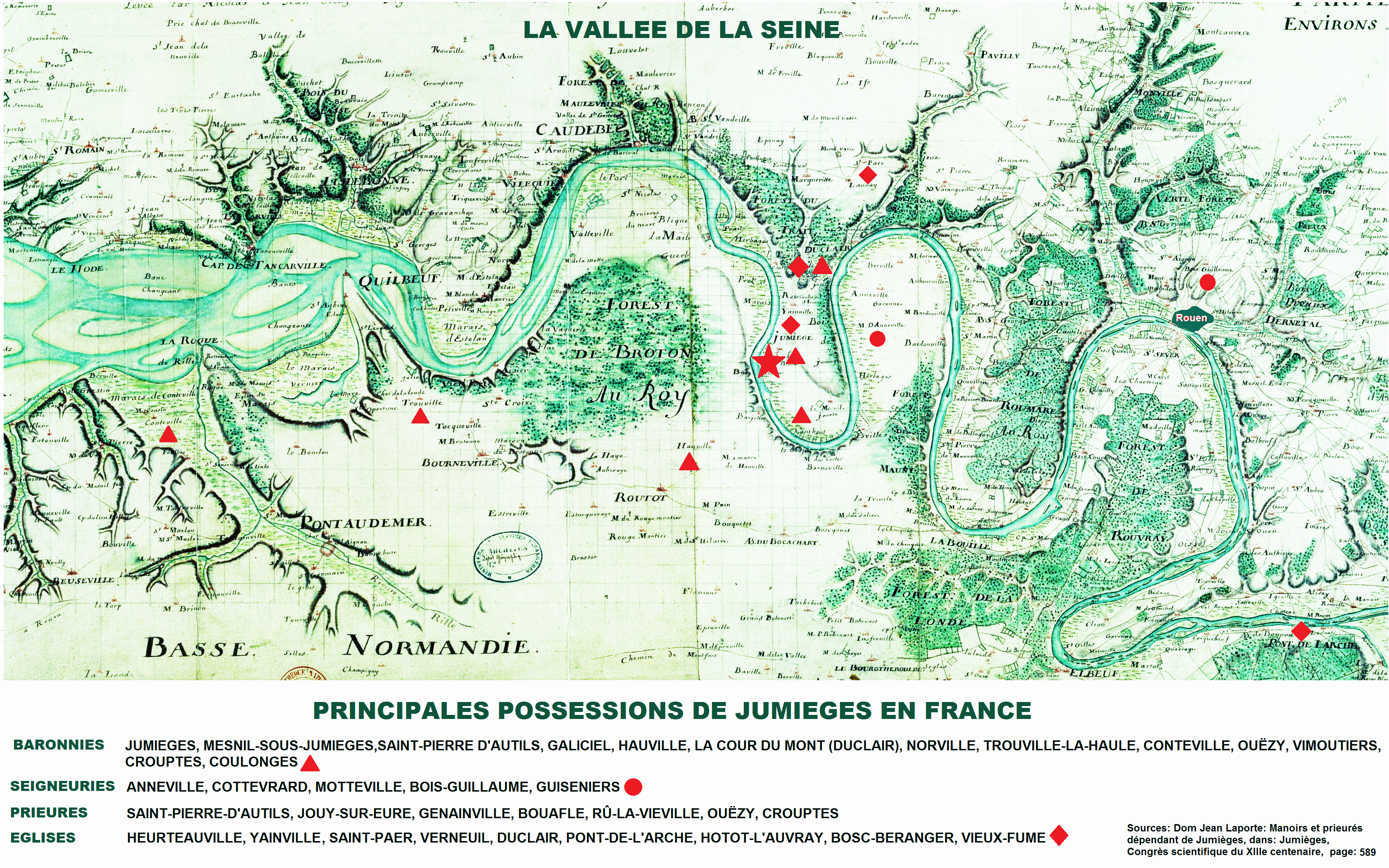 abbaye de Jumièges (76) carte des possessions de l'abbaye en Seine