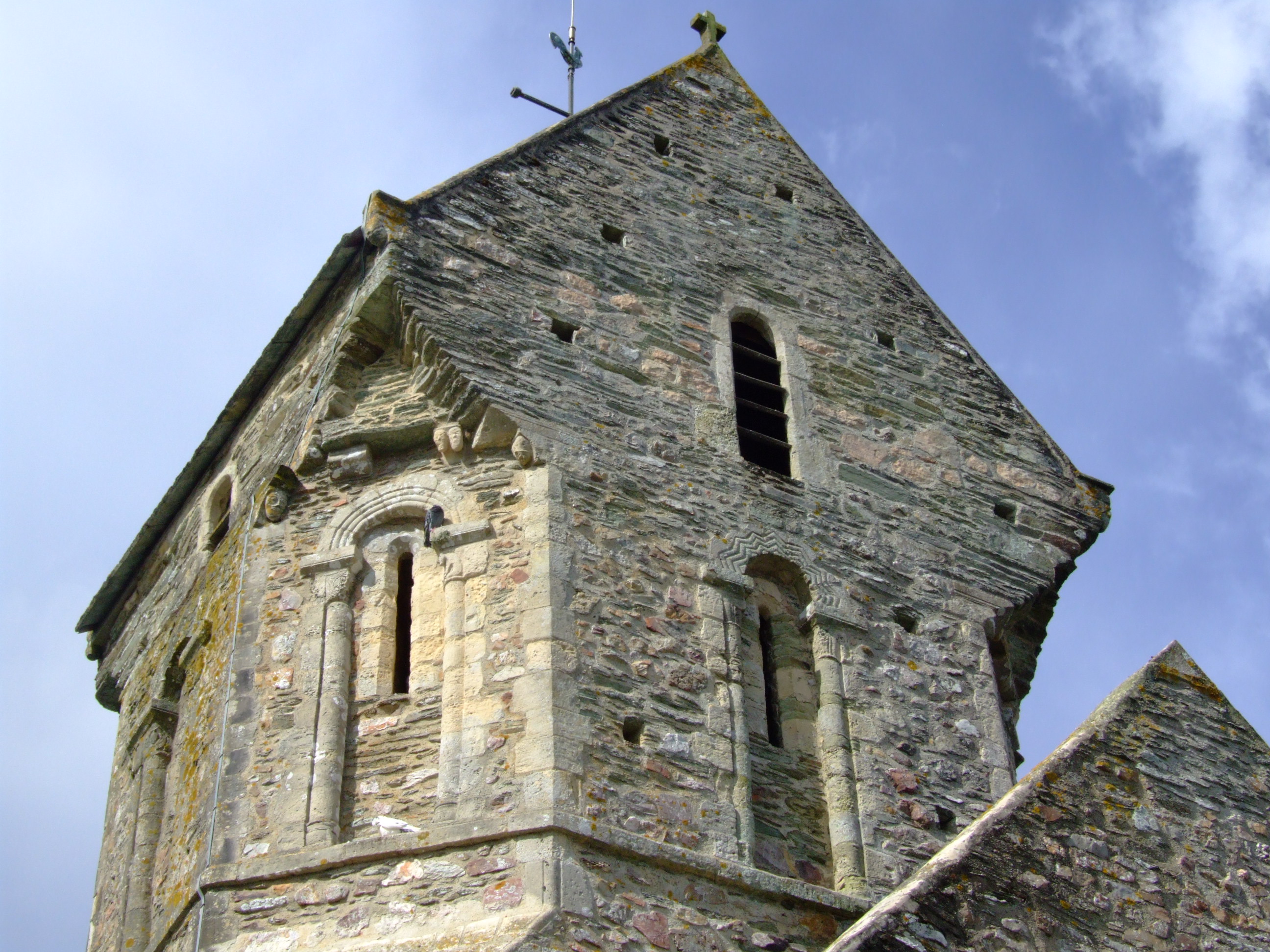 Saint-Martin d'Octeville (50) le décor sculpté du clocher octogonal montre des survivances du XIe siècle