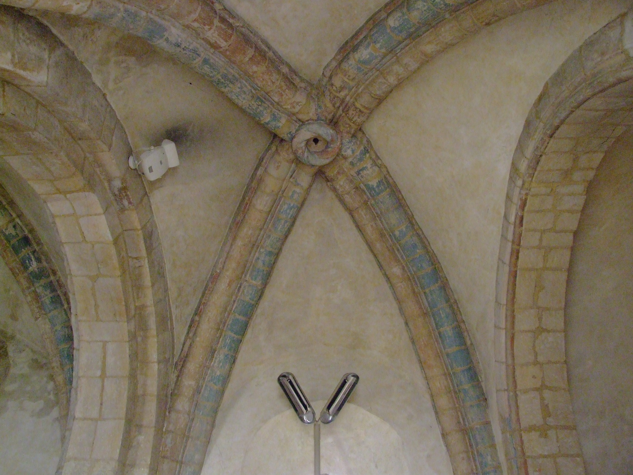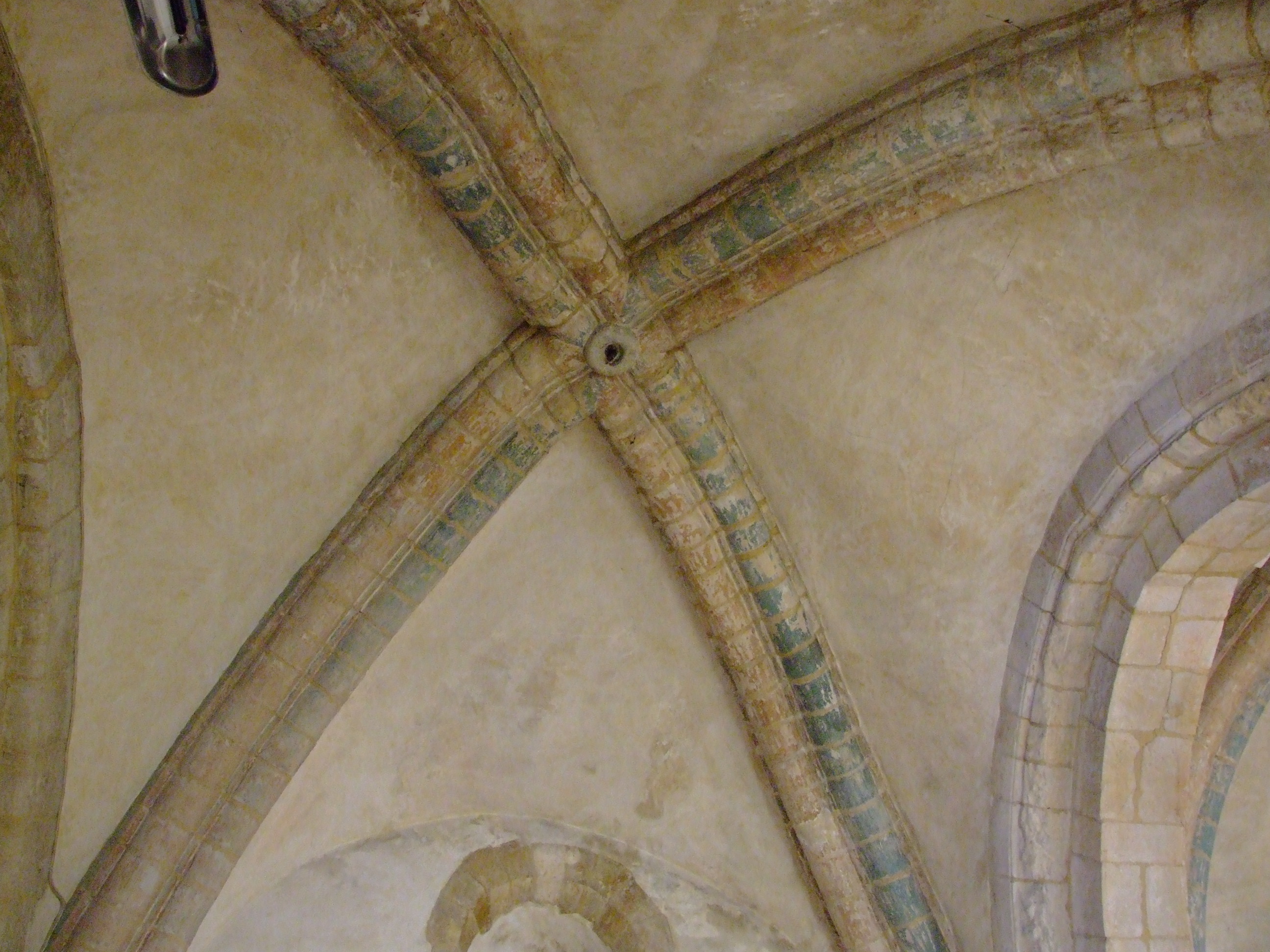 Détail de la deuxième croisée d'ogives. Les ondulations montrent le caractère expérimental de la construction au début du XIIe siècle alors que la portée n'est vraiment pas importante :
