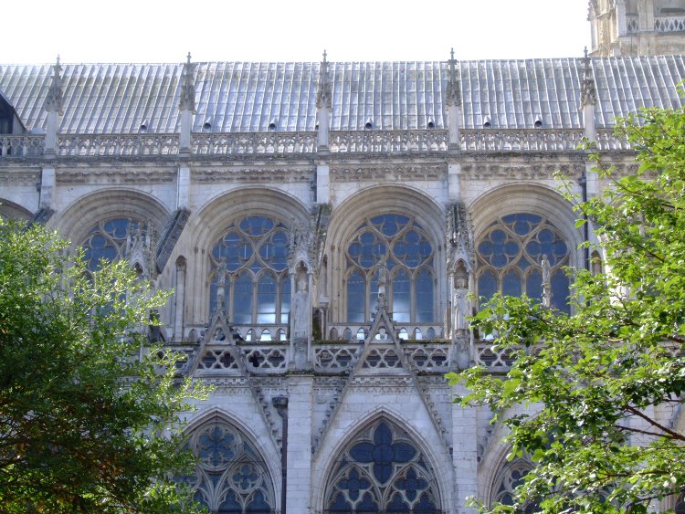 cathédrale Notre-Dame de Rouen (76) vue latérale de la nef montrant la transparence de la construction gothique utilisant des arcs en plein-cintre habituellement qualifiés de romans