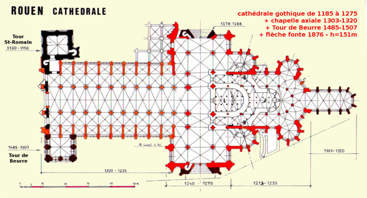cathédrale Notre-Dame de Rouen (76) plan de la cathédrale gothique de 1185 à 1275
