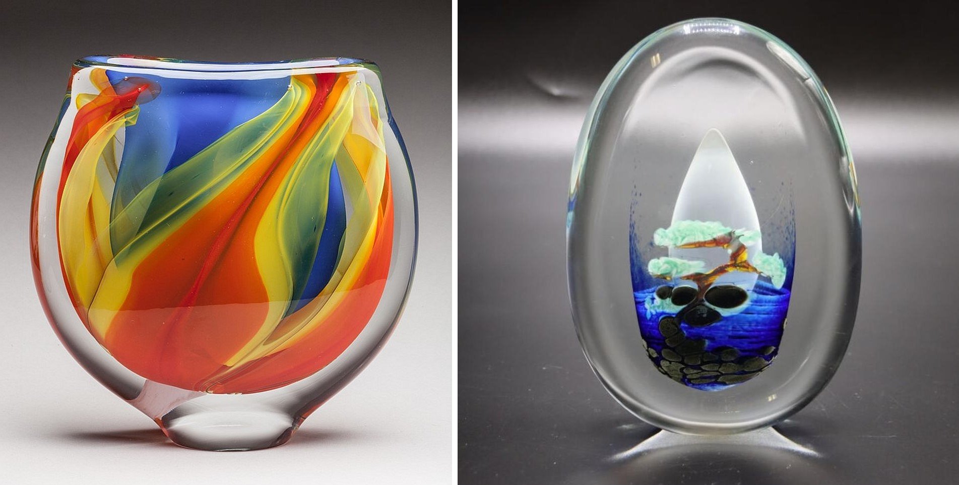 Verrerie d'Eric Laurent à Montoison (26) deux pièces d'Eric Laurent