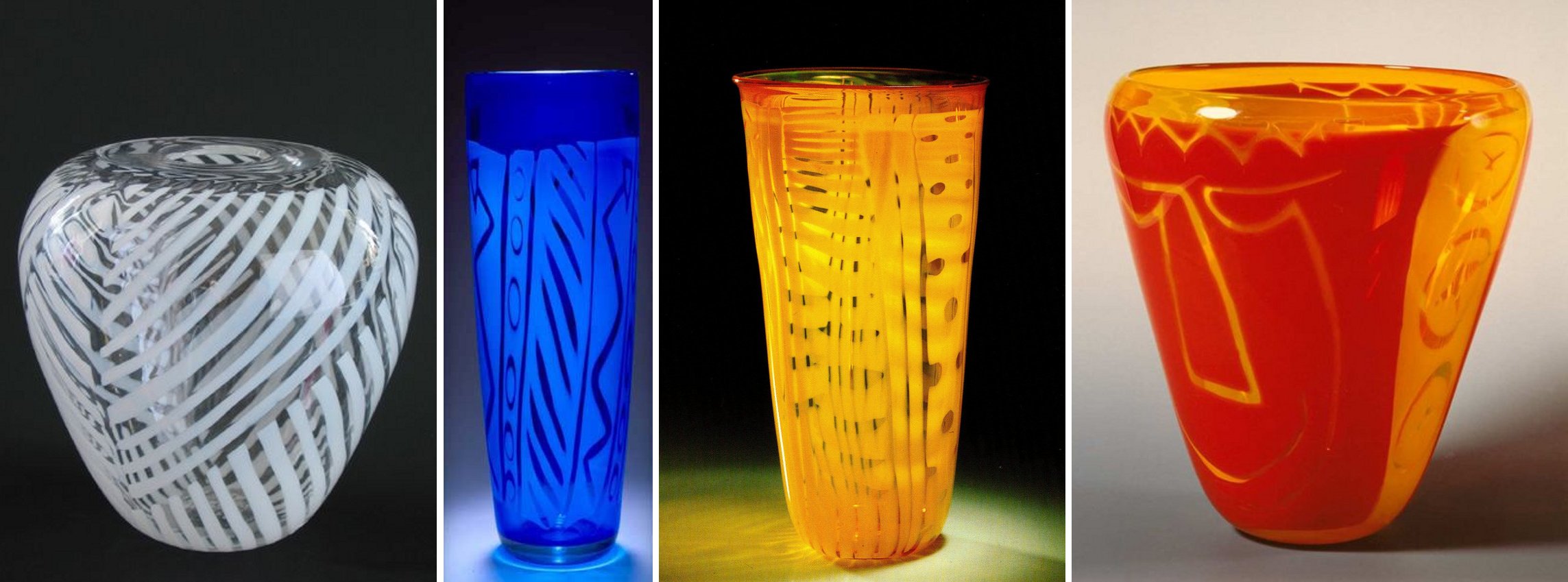 Nicolas Morin - Verrerie Le Pontil à Dieulefit (26) trois Vases Croco à gauche (1991) et Vase Zig-Zag (1993) à droite