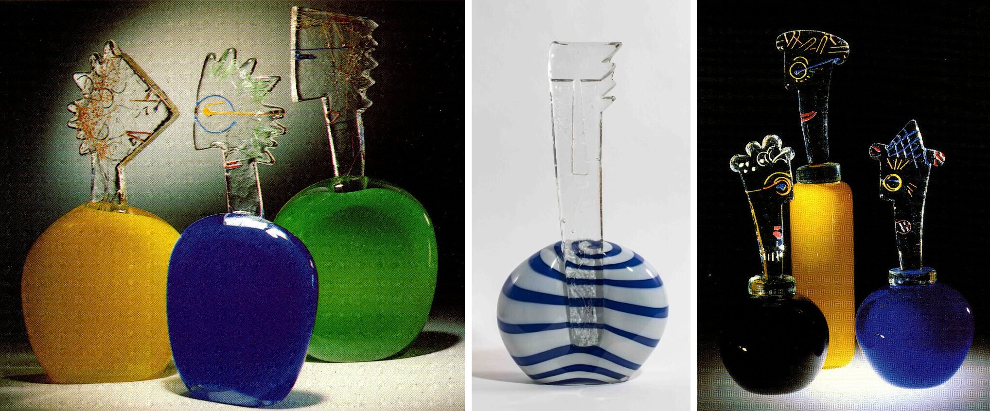 Nicolas Morin + Catherine Sintès - Verrerie Le Pontil à Dieulefit (26) quatre sculptures de bustes de 1997 à gauche et trois flacons en 1997